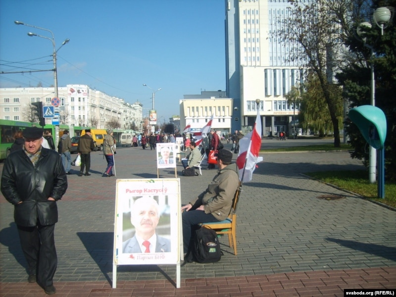 Адразу шэсьць пікетаў пад бел-чырвона-белымі сьцягамі на цэнтральнай магілёўскай вуліцы Першамайскай арганізавала сёньня ініцыятыўная група прэтэндэнта на прэзыдэнцтва ад партыі БНФ Рыгора Кастусёва. Адзін ад аднаго яны былі за пяцьдзесят мэтраў.