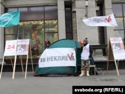 Алесь Міхалевіч на пікеце ў Віцебску.