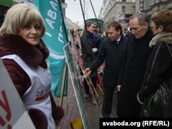 А галоўнымі героямі імпрэзы каля ГУМа былі зьбіральнікі подпісаў, якім кандыдаты дзякавалі за працу, уручалі падарункі і граматы. Сябра ініцыятыўнай групы Някляева Алег Ладуцька кажа, што зьбіўся зь ліку, колькі подпісаў сабраў: