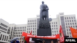 Каля 50 прадстаўнікоў Беларускай партыі левых "Справядлівы сьвет" 7 лістапада ўсклалі кветкі да помніка Леніну на плошчы Незалежнасьці ў Менску.