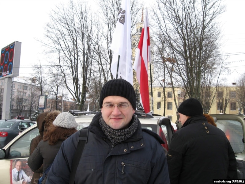 Дзьмітры Гусакоў, агітатар і ўдзельнік аўтапрабегу: “Людзі цікавяцца альтэрнатыўнымі кандыдатамі, людзі хочуць пераменаў. Людзі хочуць жыць лепей, жыць у свабоднай краіне”.