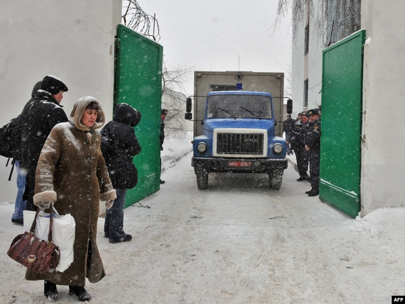 Праз браму турмы ўвесь час выяжджаюць і ўяжджаюць аўтазакі.
