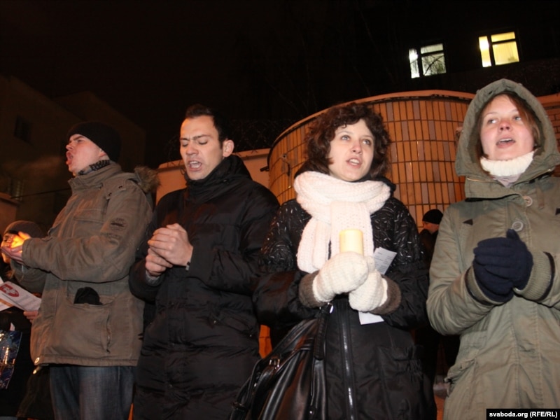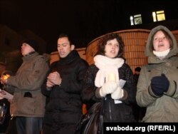 Ля турмы на Акрэсьціна сабралася каля 200 чалавек. Многія трымаюць у руках запаленыя сьвечкі як знак салідарнасьці з палітычнымі вязьнямі.