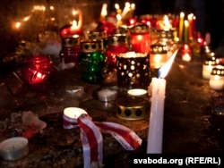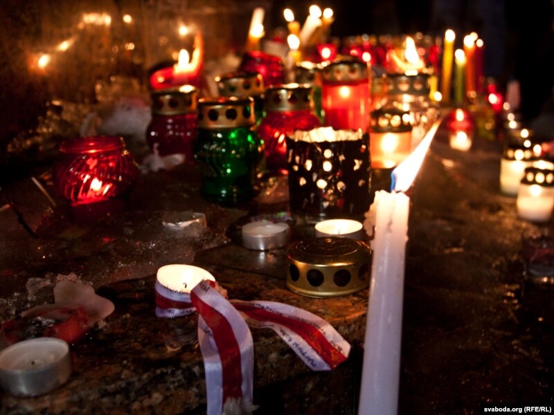 19:30 Каля Чырвонага касьцёлу, ля скульптуры арханёла Міхаіла, людзі ставяць сьвечкі. Тут на гэтыя хвіліны прыкладна паўсотні сьвечак. Прысутныя распавядаюць, што ім не далі далучыцца да акцыі салідарнасьці ля будынку КДБ, адбіралі партрэты палітзьняволеных па дарозе. Таму яны пайшлі да Чырвонага касьцёлу. Спачатку хацелі паставіць сьвечкі да прыступак Дому ўраду, але туды іх не дапусьцілі шэрагі людзей у чорным, якіх каля будынку вялікая колькасьць.
