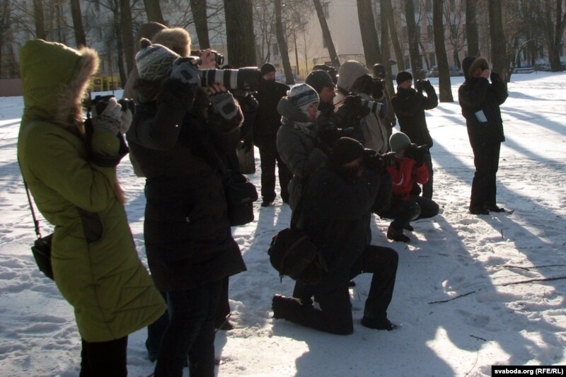 Удзельнікі заявілі, што з-за моцнага марозу акцыя будзе доўжыцца 5 хвілінаў.