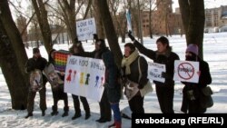 10 чалавек удзельнічалі ў пікеце супраць гамафобіі ў Беларусі. Акцыя прайшла ў сквэры насупраць будынку Міністэрства юстыцыі.