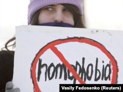 На акцыю супраць гамафобіі прыйшло некалькі дзяўчат. Гаворыць адна зь іх, Алеся: