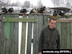 Уздоўж на платах сядзяць пульхныя індыкачкі — сёньняшняя хатняя праца спадара Астапенкі.