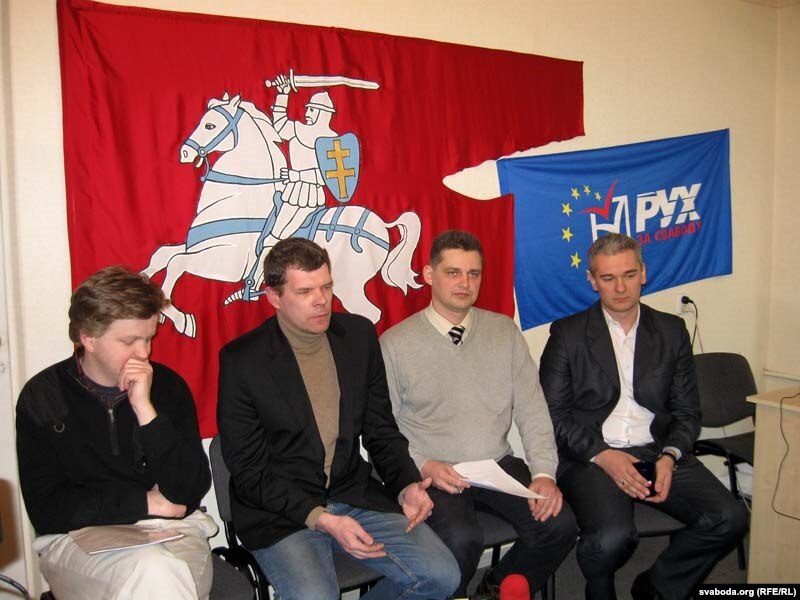 Удзельнікі прэсавай канфэрэнцыі зьлева направа: Аляксандар Лагуцёнак — прадстаўнік "Беларускай партыі зялёных" ; Кастусь Лукашоў — прадстаўнік саюзу "За мадэрнізацыю"; Юрась Губарэвіч — прадстаўнік руху "За свабоду"; Валер Кавалеўскі — удзельнік Плошчы і вязень турмы КДБ.
