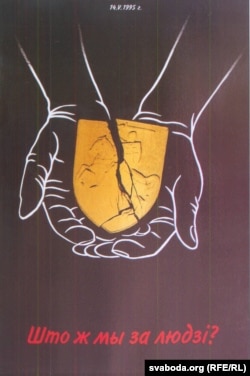 Аляксей Марачкін: “Перш за ўсё тры плякаты Ўладзімера Крукоўскага. Памятаеш яго клясычны твор “Што ж мы за людзі?”. Далоні, якія трымаюць разьбіты ўшчэнт герб Пагоня... Другі плякат мае назву “Свабоду палітвязьням!”. І трэці не дапушчаны на выставу плякат прысьвечаны Беларускай Народнай Рэспубліцы. Ня трапілі на выставу таксама карціна Віктара Мікіты і мая “Сьцяна” (дарэчы, на выставу ў 1997 годзе яна "прайшла"). І я разумею, чаму сёньня ўлады такія насьцярожаныя: за кратамі сядзяць знакавыя людзі – палітыкі, былыя кандыдаты на прэзыдэнта. Ня трапіў у экспазыцыю і яшчэ адзін мой новы твор – “Здані, або Пераможцы”. "Пагоня" даўно ўжо адчувае на сабе ўціск з боку ўладаў, а таксама з боку кіраўніцтва Саюзу мастакоў, хоць да яго я стаўлюся пазытыўна. Чаму ж адбываюцца гэтыя скандальныя забароны? Гэта сур’ёзная размова. І тут я мушу сказаць некалькі словаў пра кіраўнікоў саюзу, якія ўжо другі тэрмін пры ўладзе знаходзяцца – і старшыня, і намесьнікі”.