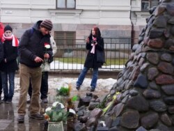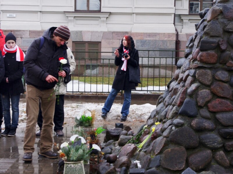 Удзельнікі, як гэта ужо сталася традыцыяй, сабраліся каля крыжа змагарам за свабоду Літвы, што стаіць над мэмарыяльнай плітой паўстанцам 1863-1864 гадоў, побач з касьцёлам Сьвятога Якуба на Лукіскім плошчы.
