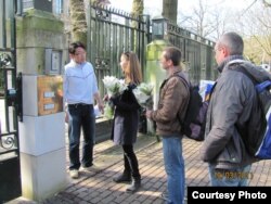 У Гаазе каля будынку Міжнароднага суда прайшла акцыя салідарнасьці з палітычнымі зьняволенымі і ахвярамі рэпрэсій у Беларусі.