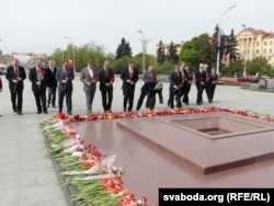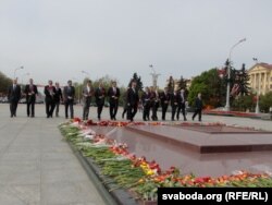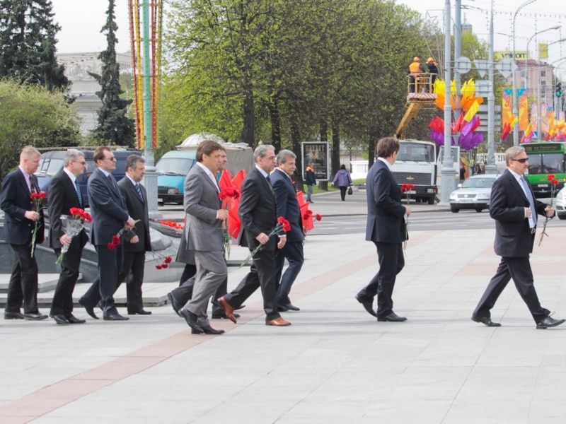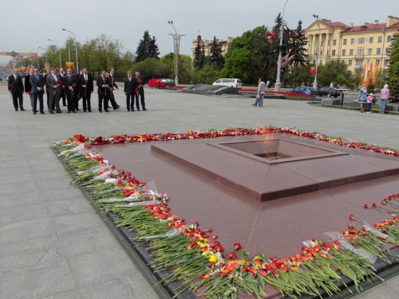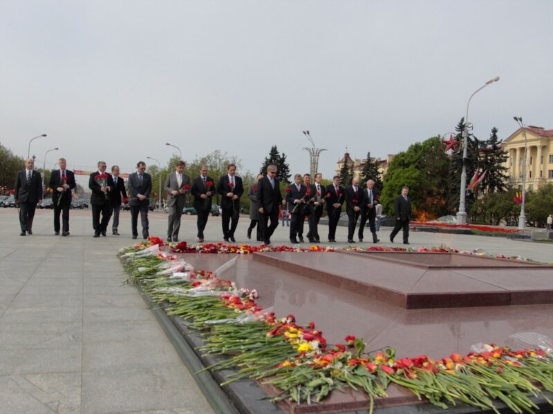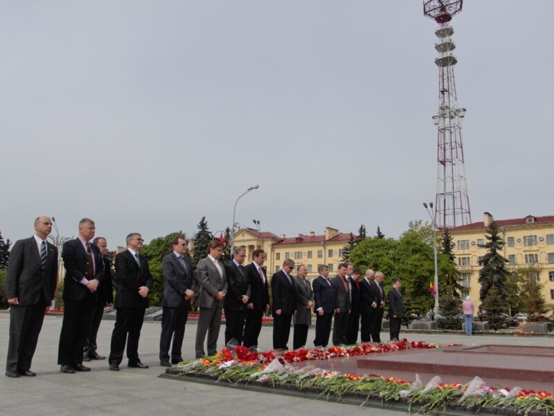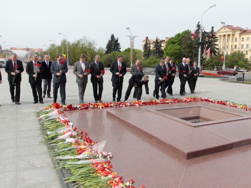 Кіраўнікі дыпляматычных місіяў краінаў Эўразьвязу, што акрэдытаваныя ў Менску, а таксама прадстаўнік дыпмісіі ЗША сёньня ўсклалі чырвоныя гвазьдзікі да Вечнага агню на плошчы Перамогі ў Менску.