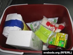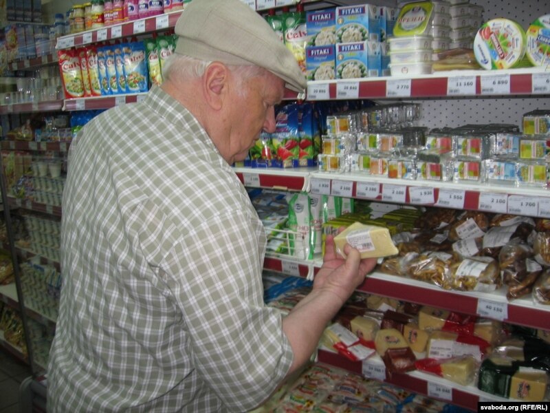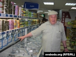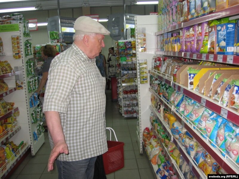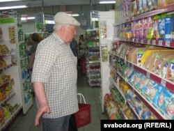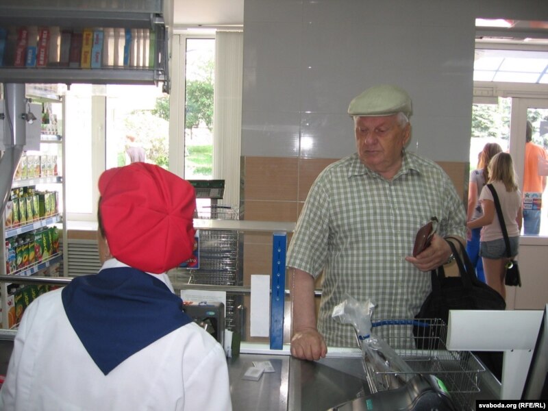 Ідзем у краму, дзе нам забараняюць фатаграфавацца, а тым больш здымаць вітрыны і цэньнікі. Аднак пасьля тлумачэньняў з аховай і адміністрацыяй усё ж працягваем напаўняць штодзённы спажывецкі кошык пэнсіянэра. А потым падрахоўваем, што купілі і колькі патрацілі: