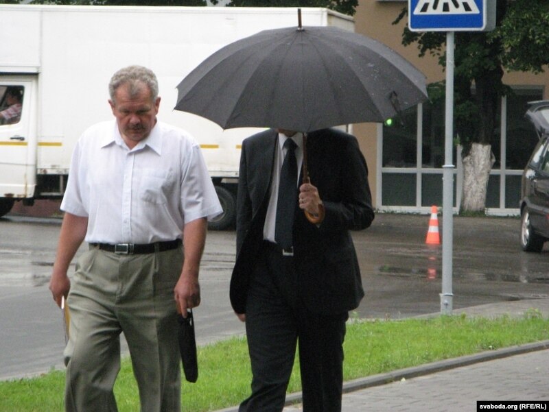 У суд накіроўваюцца экспэрты па тэкстах з крымінальнай справы Андрэя Пачобута — Віктар Жалезьніковіч і Павал Скрабко (пад парасонам) з аблвыканкаму.