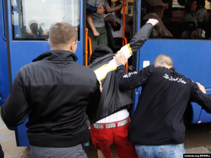19:10 Пачаліся затрыманьні, пад'ехаў міліцэйскі аўтобус, людзі ў цывільным выбарачна хапаюць людзейі і груба запіхваюць у аўтобус. На вачах карэспандэнта Радыё Свабода затрымалі каля 10 чалавек каля пераходу да цырку.