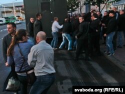 Каля загародак зьбіраліся людзі. Было бачна, што некаторыя групы тут зусім не выпадкова. Але яны былі вельмі разгубленыя і ня ведалі, што рабіць. Ніводнага воплеску, ніводнага гудку аўтамабіля пакуль не раздавалася.