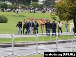11:45 Усіх, хто праходзіць праз турнікеты і мэталяшукальнікі, супрацоўнікі праваахоўных органах фіксуюць на відэа. Аляксандра Лукашэнкі на трыбуне яшчэ няма, але супрацоўнікі прэзыдэнцкай службы бясьпекі ўжо занялі свае месцы ўздоўж праспэкту Машэрава.