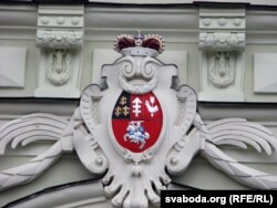 На браме адноўлены і велічны родавы герб Сапегаў з Пагоняй.