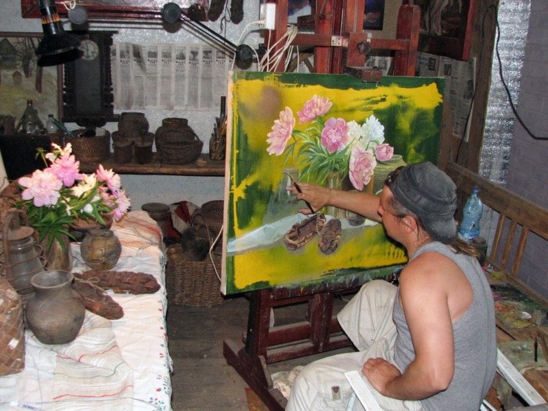 Родныя краявіды і прадметы ўжытку ня толькі натхняюць ягоную творчасьць, але часам ажываюць у новым мастацкім увасабленьні.