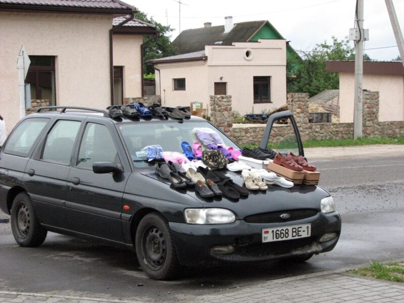 Гандляваць на Палесьсі ніколі не было сорамна. У палескіх вёсках і гарадах шмат хто гэтым займаецца, шмат дзе паўсталі новыя прыватныя крамы. Людзей зь цяжкімі клункамі, набітымі таварам, можна пабачыць па ўсіх палескіх гарадах і мястэчках. Гандаль абуткам на рынку ў Дамачаве.