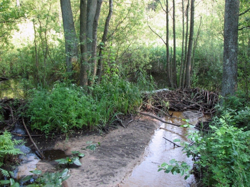 Бабры нечакана загацілі ручаіну і зрабілі сваю плаціну ля самай дарогі. Хаткі іхнія ўбачыць так і не ўдалося, яны недзе далей у затоцы. Дый трывожыць зьвяркоў нельга.