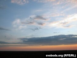 Які прыгожы заход сонца над бязьмежным лесам! 40 кілямэтраў на поўдзень ад Берасьця.