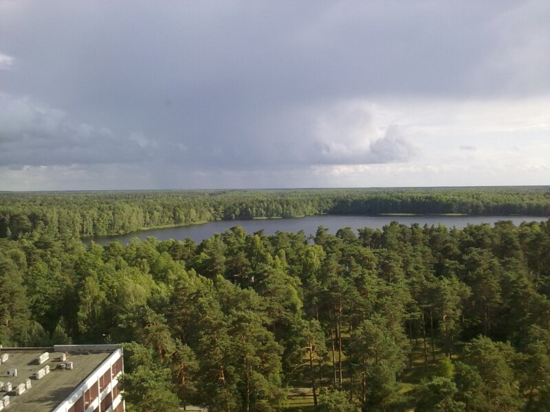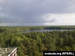 Бязьмежны лес і возера з вышыні птушынага палёту. На самым поўдні Берасьцейшчыны.