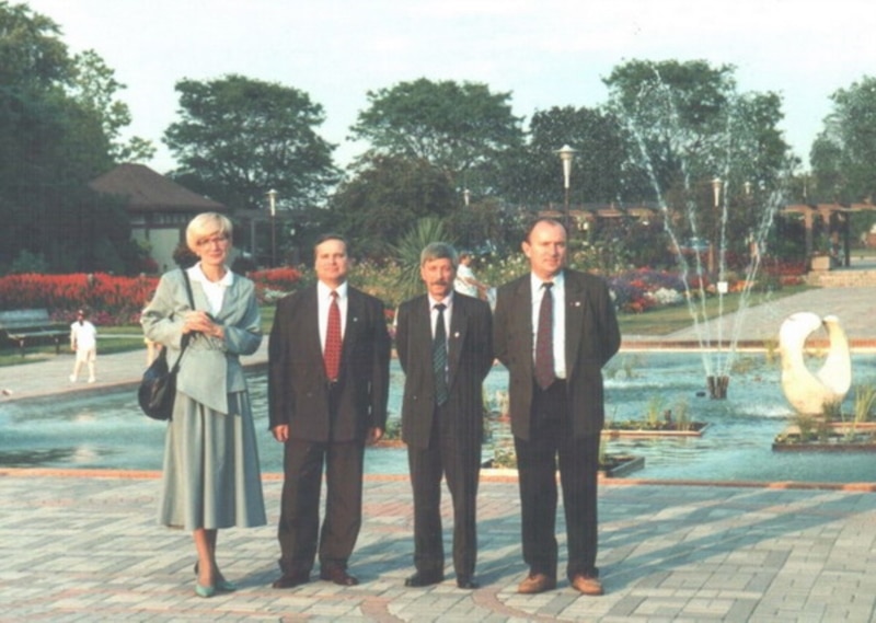 Група дэпутатаў Вярхоўнага Савету ў Дэтройце, штат Мічыган. Зьлева направа: Мікола Мацкевіч, Барыс Гюнтэр, Галіна Сямдзянава, Сяргей Антончык, Аляксандар Паруль, Лявон Дзейка. Верасень 1994 г.