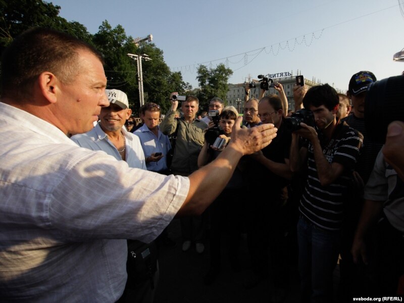 «23 чалавекі, якія былі затрыманыя 7 ліпеня — іх папярэдзілі працадаўцы, каб яны сёньня не прыходзілі. Інакш у іх будуць праблемы. Аж да звальненьня. Да працадаўцаў прыходзілі ці то супрацоўнікі КДБ, то міліцыі, і празь іх спрабавалі неяк паўплываць на рашэньні людзей — ісьці на плошчу ці не».