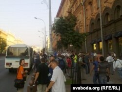 17:00 На пляцоўцы ля Дому афіцэраў 6 мікрааўтобусаў зь людзьмі ў цывільным. Наш карэспандэнт пачуў, як у рацыі прагучала «Увага, адзінкам з Заводзкага РУУС, задзейнічаным у мерапрыемстве, пастраеньне каля аўтобусаў».