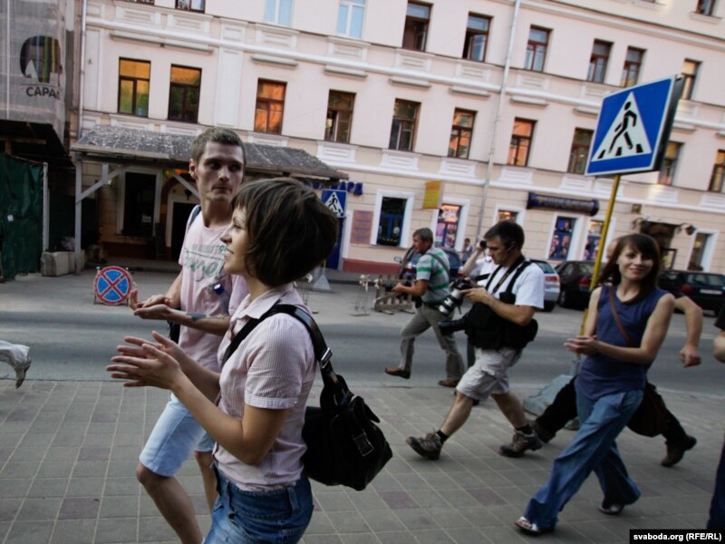 Ужо на другую акцыю на Кастрычніцкай плошчы ў Менску сабралася больш за 200 чалавек. Моладзь слухала сьпевы пад гітару і сама спрабавала сьпяваць. Тады супрацоўнікі спэцслужбаў толькі сачылі за акцыяй, і яна абышлася без затрыманьняў.