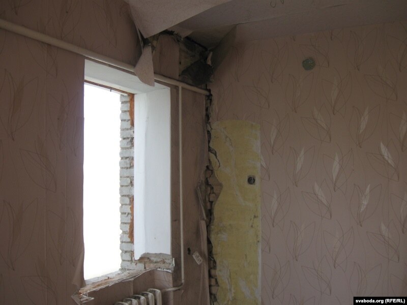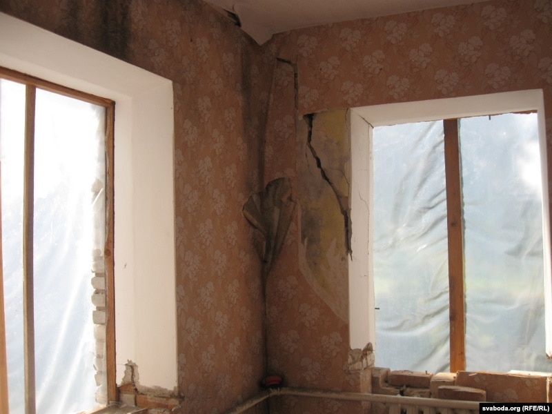 — Тры гады ўжо. Нам тую хату далі ў 78-м годзе. Будаваў нябожчык Найман такі. Павінны былі пакласьці тры маналітныя паясы. Наш дом пабудаваны проста так. Безь ніякіх маналітных паясоў. Мне, як уладальніку гэтага дома, нічога не сказалі. І ў 2001-м годзе па нашым доме пайшлі трэшчынкі невялічкія. А я зрабіў эўрарамонт. І ў адзін цудоўны дзень сьпім. Пятніца была, як сёньня помню. Такі грукат — ух! Мы аж страсянуліся. Усталі, паглядзелі. І з таго дня ўсё рухацца пайшло. А мы ж аформілі. Нам прадалі. Калі ведалі цудоўна, што такі дом, навошта было?..