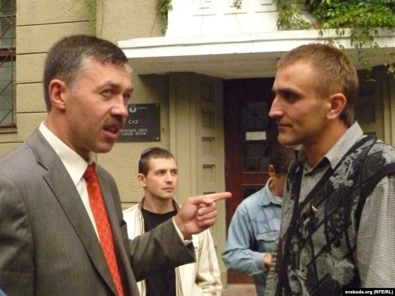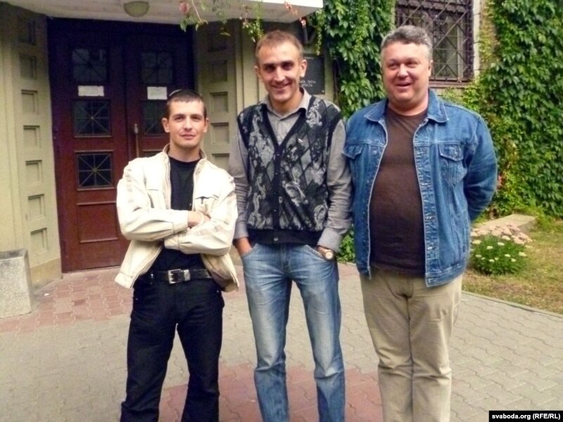 Зьміцер Шурхай з паплечнікамі пасьля судовага паседжаньня