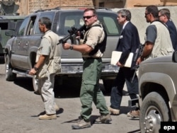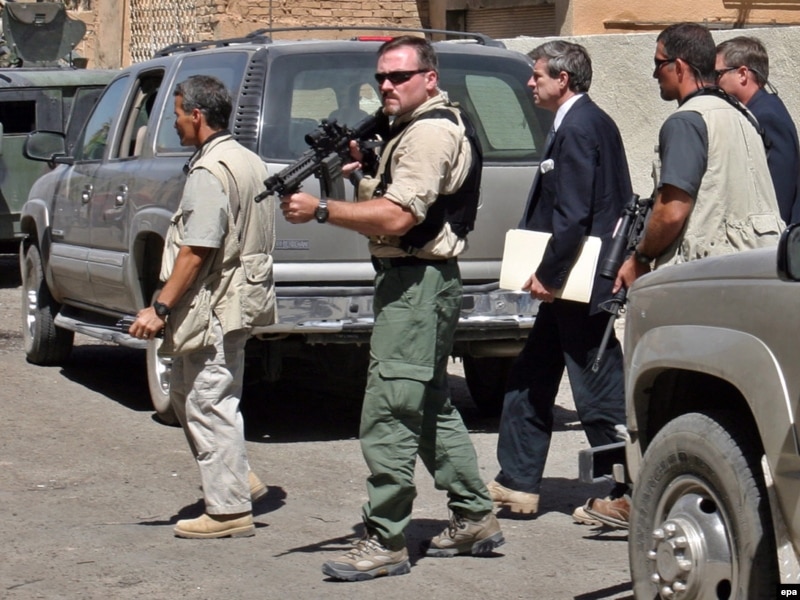 Ахоўнікі фірмы Blackwater вакол Пола Брэмэра, кіраўніка амэрыканскай цывільнай адміністрацыі Багдаду, у 2003 годзе