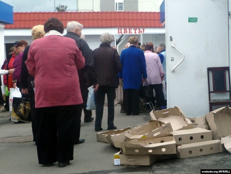 «Вы што, такая чарга, што я звар’яцела. Па кіляграм буду стаяць. А цэны — дык наагул звар’яцець можна. Скупляюць вунь цэлымі торбамі, таму й не хапае нічога. Расейцы ж вывозяць усё. Раней жа ўсё ляжала. А калі ўвечары пойдзеш — пустыя прылаўкі».