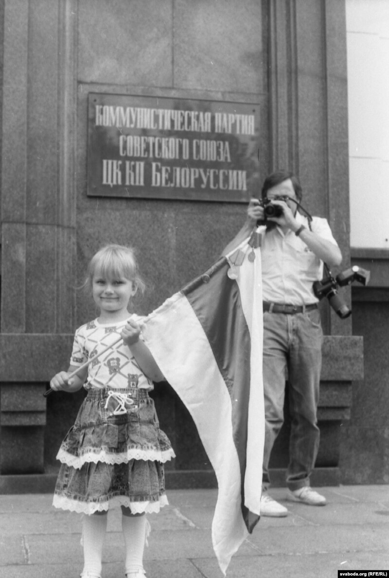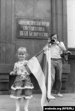 Пераможца ля будынку былога ЦК КПБ. Жнівень 1991 г.