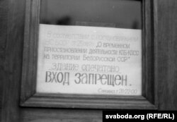 Супрацоўнікаў ЦК КПБ выводзяць з будынку ЦК, жнівень 1991 г.