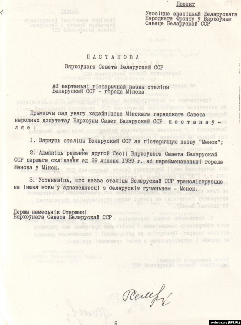 Нам падавалася, што нашае імкненьне мае неблагі шанец рэалізавацца – бо 5 верасьня 1991 году Менскі гарадзкі савет, дзе была даволі моцная фракцыя БНФ (на выбарах 1990 году сталіца прагаласавала больш дэмакратычна, чым правінцыя) прыняў рашэньне “аб вяртаньні гораду яго гістарычнай назвы Менск”:
