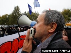 "Мы патрабуем, каб былі вызваленыя ўсе палітвязьні і рэабілітаваныя ў правах, мы патрабуем, каб былі праведзеныя новыя свабодныя выбары пад кантролем АБСЭ, бо толькі такім чынам мы зможам атрымаць дапамогу для выхаду з крызісу! Хто за новыя свабодныя выбары?"
