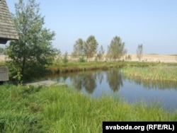 Праходзім пару-сотню мэтраў да невялікай дрыгвяной сажалкі, паабапал зарослай расьлінамі, за якімі яўна наглядаюць, каб азярцо не зарасло. Дыхаецца лёгка — вакол палеткі, аж пад небакрай.