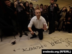 Пэрсанальная выстава выбітнага беларускага каліграфа Генадзя Мацура пачалася з творчай дзеі. Аўтар кажа, што ён ня можа патлумачыць, што такое мастацтва каліграфіі, можа толькі паказаць. І на велізарным скрутку паперы з дапамогай двух пэндзляў тушшу пачаў пісаць словы, якія склаліся ў выраз: «Музэй сучаснага мастацтва». Менавіта тут і адчынілася ягоная першая пэрсанальная выстава.