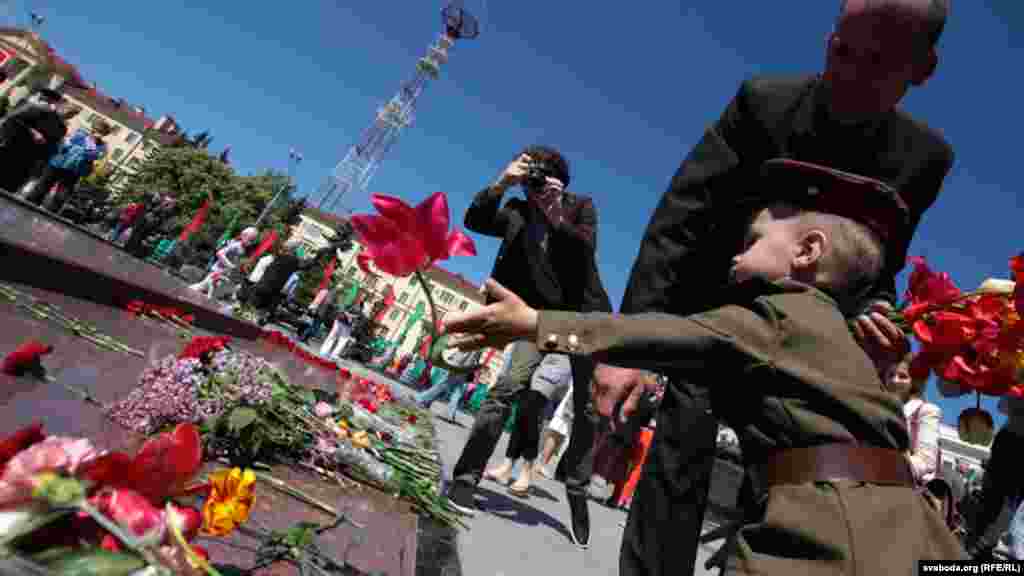 Сярод тых, хто прыйшоў ускласьці кветкі, быў старшыня партыі левых "Справядлівы сьвет" Сяргей Калякін