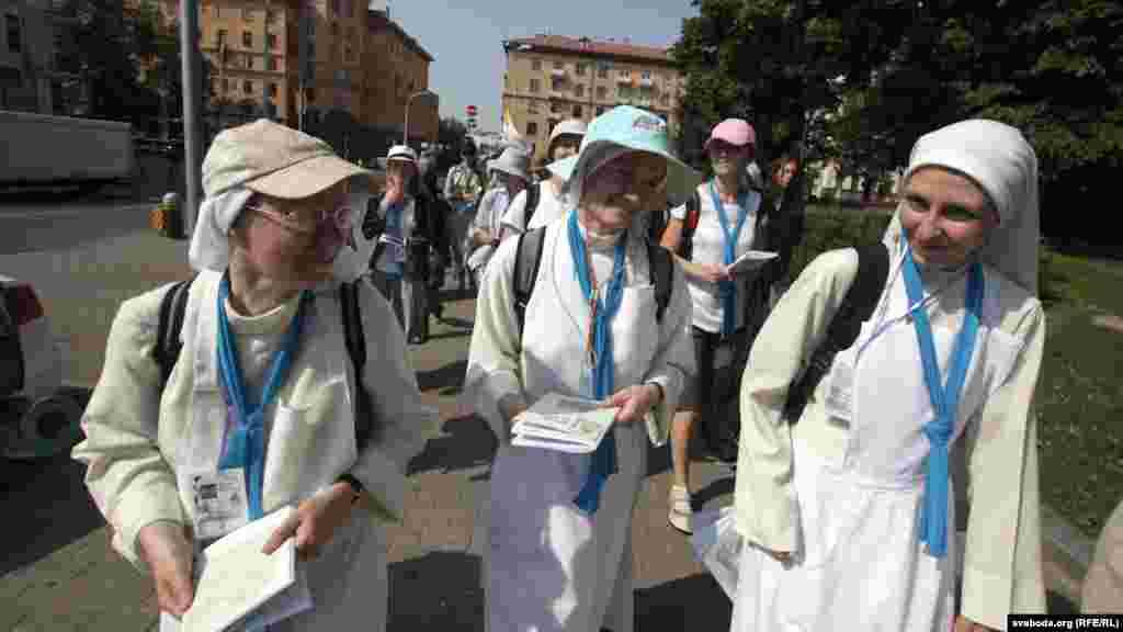 Пілігрымы сьпяваюць песьніў у гонар Маці Боскай Будслаўскай