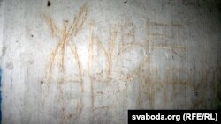 Зарослы пустазельлем, з трэшчынамі ў столі сымбаль адыходзячай эпохі. На адной са сьцен надпіс «Жыве Беларусь». У такім антуражы — зусім не аптымістычны.