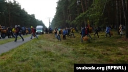 Чарткоў: «Хутчэй, пяшчотным. Вельмі далікатна нас выносілі за месца ачапленьня, а потым гэтак жа далікатна клалі на зямлю. Абсалютна аніякай жорсткасьці. Паклалі і глядзелі, каб мы не выходзілі на недазволеную тэрыторыю. Хаця некаторым нейкімі шляхамі-абыходамі ўдалося ўсё ж трапіць на шашу. Паколькі наша акцыя была мірнай, абыходжаньне не было агрэсіўным, а наадварот, дружалюбным».