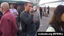 На сустрэчу, якая прайшла пад бел-чырвона-белымі сьцягамі і плякатамі з заклікамі да байкоту, прыйшло некалькі дзясяткаў чалавек. Тут жа прысутнічалі назіральнікі ад АБСЭ. Міліцыі не было, але прадстаўнік спэцслужбаў вёў апэратыўныя відэаздымкі.