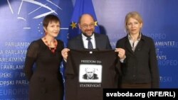 У Брусэлі адбыліся сустрэчы жонак палітвязьняў Алеся Бяляцкага і Міколы Статкевіча — Натальлі Пінчук і Марыны Адамовіч — са старшынём Эўрапарлямэнту Марцінам Шульцам.