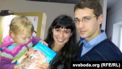 Гутару пасьля прэзэнтацыі з маладымі бацькамі з прыгожай аднагадовай дачушкай: