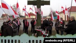 Да крыжа ўсклалі вянок зь бел-чырвона-белымі кветкамі, паставілі запаленыя зьнічкі.